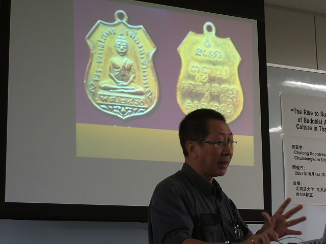 「タイ仏教におけるお守り文化」特別講演 IN 北大 10月4日北海道大学で、タイのチュラーロンコーン大学教授のチャローン・スンタラーワーニット氏が特別講師として、「タイ仏教におけるお守り文化」の特別講演が行われました。 タイのお守りは単なる宗教の持つお守りの意味だけではなく、現在では、「お守り」はタイの経済の一部になった。タイはほかの国にはない「お守り市場」があり、人気のお守りは100万円以上の値がつくほどの大きな市場である。。 さらに、タイのお守りは国際化になり、中国、香港、シンカポールなど、「お守り」を買いに来るツーアも増えてきたといったことなど現代における「タイのお守り事情」についても話された。 (北海道タイドットコムニュース) |