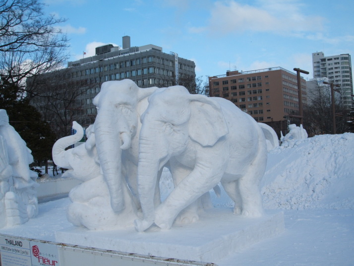 雪で作られたゾウの表情が豊かだったところが審査員に評価され見事優勝になりました。