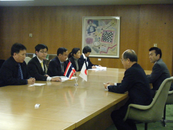 平成21年12月21日-24日まで、タイ王国下院議員予算監視委員会が北海道を訪問しました。この訪問団は議員5名と職員4名が同行しました。21日は、北海道庁を表敬訪問し、山本副知事と意見交換をしました。山本副知事はタイでの北海道のプロモーション活動について、両国はとても良い協力関係にあるということを話されました。また、北海道とタイの関係は、近年観光においても深まっており、より互いの観光客も増加することが見込まれるだろうということで、タイと北海道の直行便の要請についても話は及びました。 24日は函館市を訪れ、函館市の谷澤副市長を表敬訪問しました。その後、函館の予算について説明を受け、タイで役立てるため訪問団は積極的に質問をし、活発に意見交換をしました。