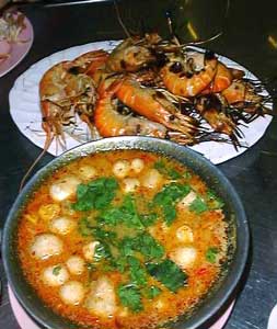 左はご存じ、えび焼きとトムヤムクン、右はオースワンというカキのモヤシ入りモンジャ焼きのようなものです。全部、とても美味!!しかも安い!日本では、絶対に食べられない、味と値段です。これだけでも食べに行く価値はあります!) |